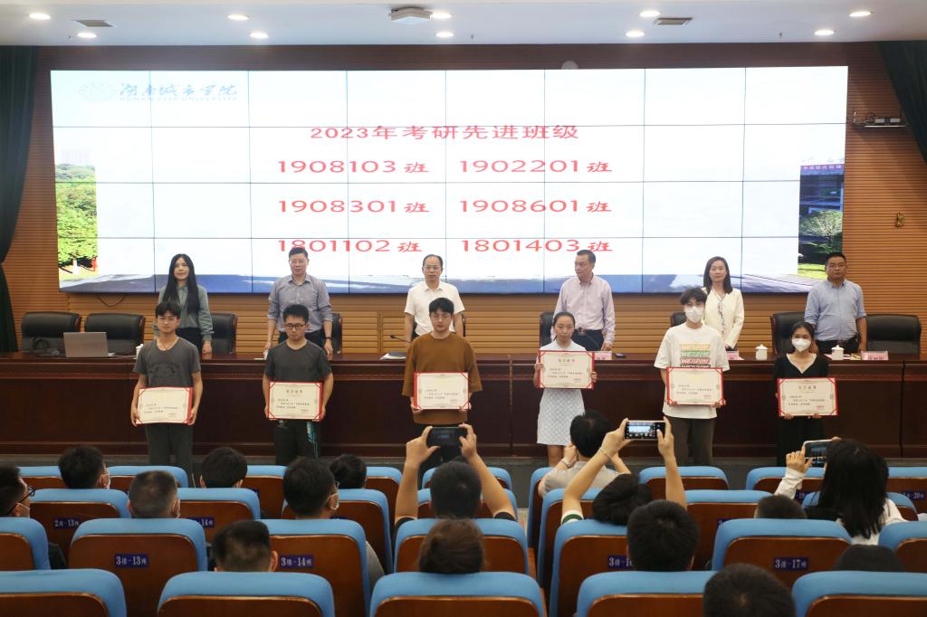 会上,陈列尊宣读了《关于表彰2023年考研工作先进单位的决定》。2023年,我校部分二级学院和班级在考研工作中表现优异,其中,材料与化学工程学院、建筑与城市规划学院、市政与测绘工程学院三个学院被授予“考研工作先进集体”称号,考研录取率分别为29.23%、23.33%、22.40%。土木工程学院、美术与设计学院/国际教育学院两个学院被授予“考研工作进步奖”称号,1908103、1902201、1908301、1908601、1801102、1801403等6个班级被授予“考研先进班级”称号。随后,出席会议的领导向获奖集体现场颁发了奖牌(状)。