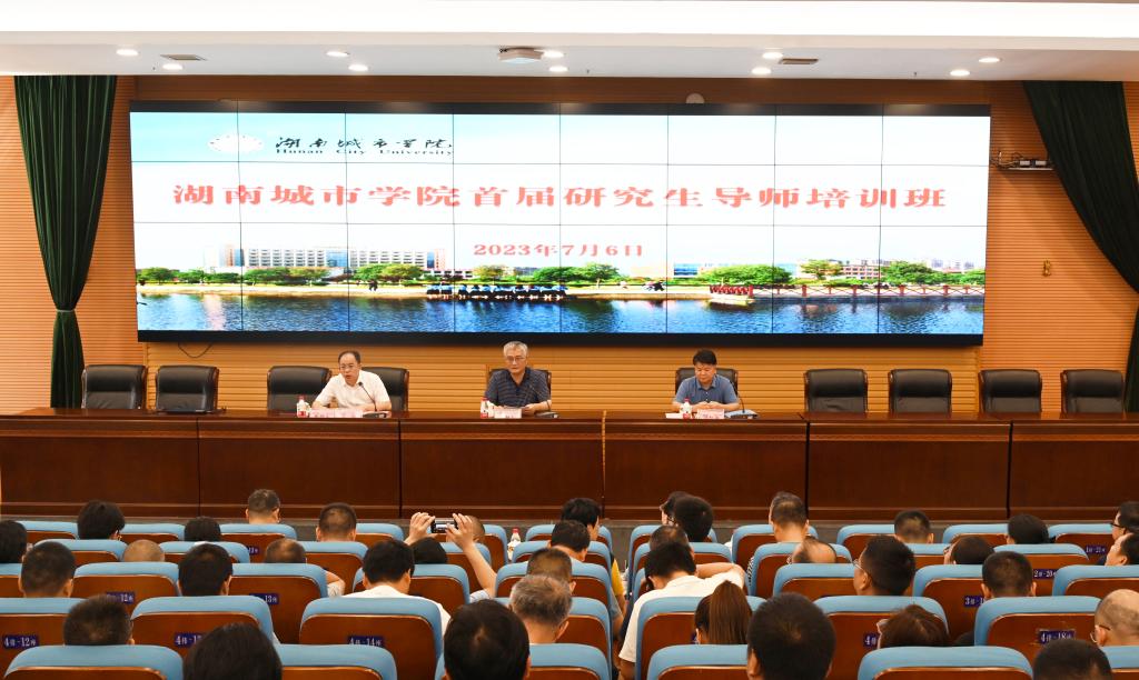 此次培训邀请了省教育厅学位管理与研究生教育处处长颜胜利现场指导,邀请了湖南大学研究生院院长张亚斌和湘潭大学研究生院院长胡强作专题讲座。学校党委书记汤放华出席并讲话,校长何振主持开班仪式,学校研究生培养单位的相关领导、负责研究生教育的相关老师、新遴选的研究生导师以及研究生处相关人员参加。