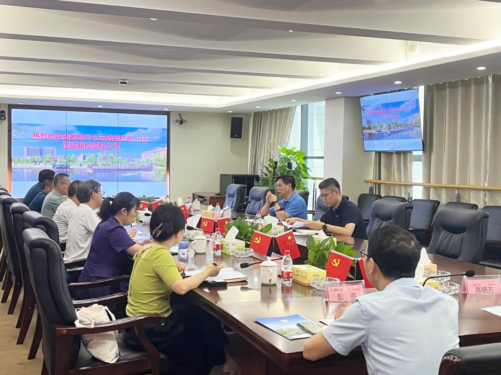 本网讯(供稿:基建与后勤管理处)为深入贯彻落实全国、全省安全生产电视电话会议精神,确保校园安全风险和隐患排查整治到位,8月8日,省教育厅党组副书记、副厅长王玉清来我校督导校园安全和安全生产工作。校长何振、副校长夏宏宇,湖南工艺美术职业学院党委书记陈鸿俊、校长夏能权参加座谈会。会议由何振主持。
