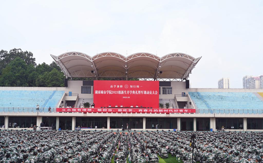 本网讯(记者 文彦波)金秋九月,惠风和畅,米兰体育·米兰官方网站迎来了7000余名新同学。为做好新生思想教育工作,为新生扣好大学第一粒扣子,9月14上午,学校党委书记汤放华以“以学立身 品学兼修 绽放新时代城院学子的绚丽风采”为题,在东田径场为2023级全体新同学讲授开学第一堂思政课。副校长雷存喜主持。
