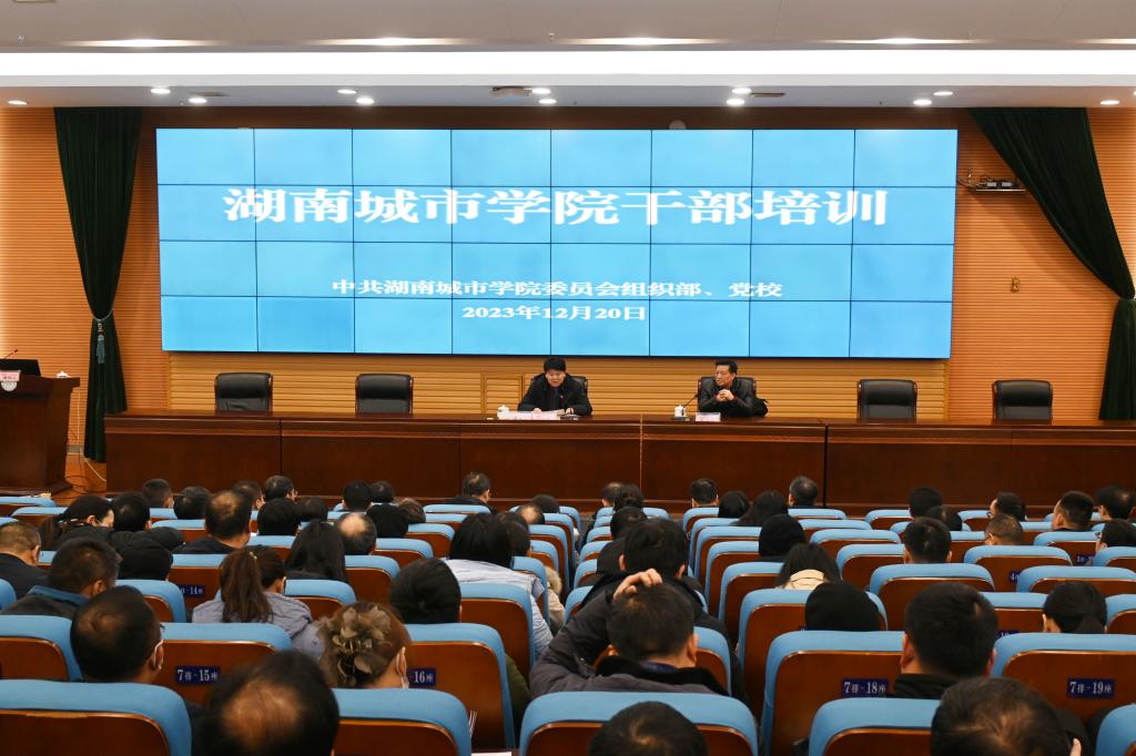 本网讯(记者 博夕)12月20日,我校在图书馆报告厅举行2023年干部培训班第三讲,湖南师范大学党委书记、欧洲科学院院士蒋洪新应邀作了题为“大学的文化”的辅导报告。报告会由校党委书记汤放华主持。