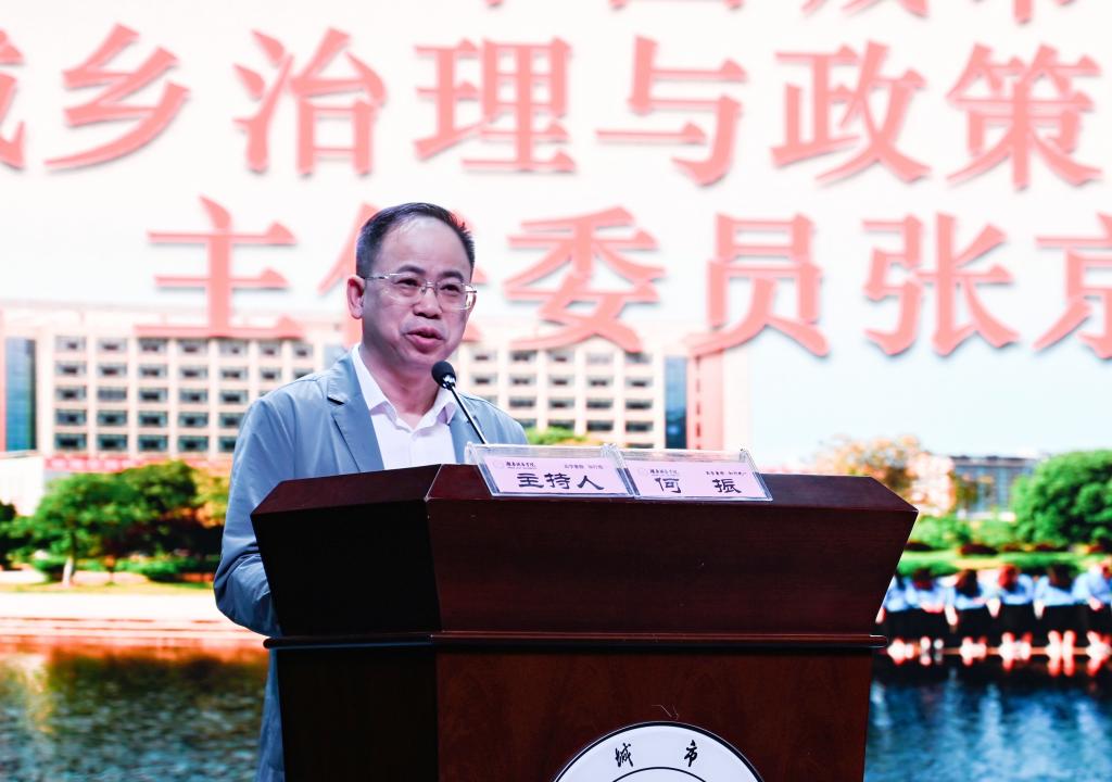 中国城市规划学会常务副理事长兼秘书长石楠教授,中国城市规划学会副秘书长曲长虹教授,中国城市规划学会城乡治理与政策研究专业委员会主任委员、南京大学建筑与城市规划学院张京祥教授,中国城市规划学会城乡治理与政策研究专业委员会秘书长、南京大学建筑与城市规划学院副院长罗小龙教授,我校党委书记汤放华教授,校长何振教授,党委副书记袁志成教授出席会议。何振主持开幕式。