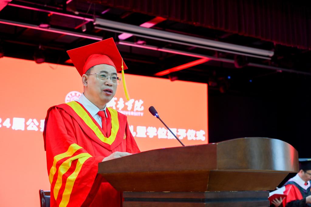 陈列尊宣读了致2024届毕业生的《廉洁家书》,他希望全体毕业生在以后的生活工作中清廉相伴,正道直行,不负青春,成就梦想。