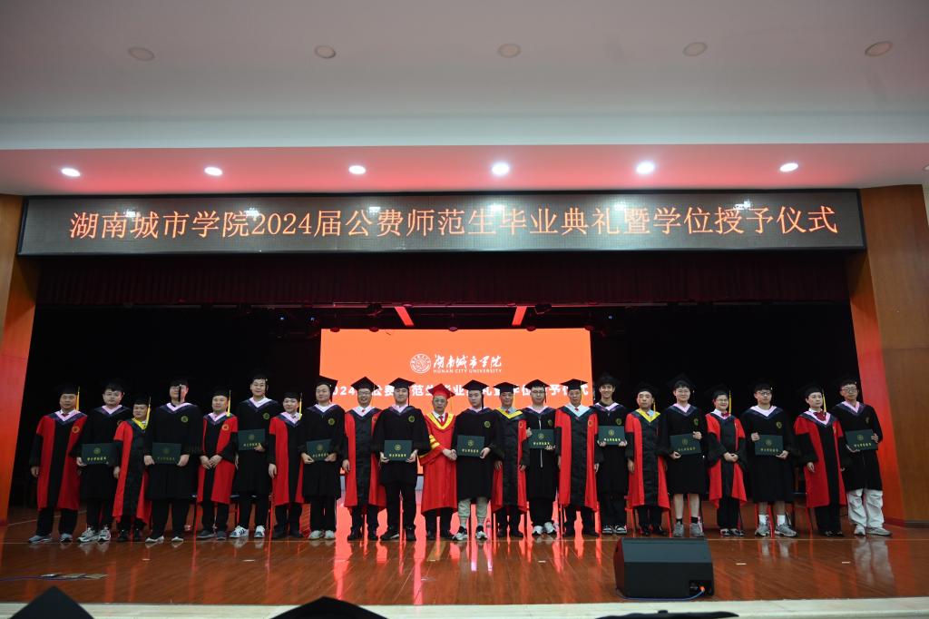 学生工作部、教务处、团委负责人,人文学院、理学院、教师教育学院书记、院长、副书记、公费师范生毕业班辅导员及毕业生500余人参加典礼。