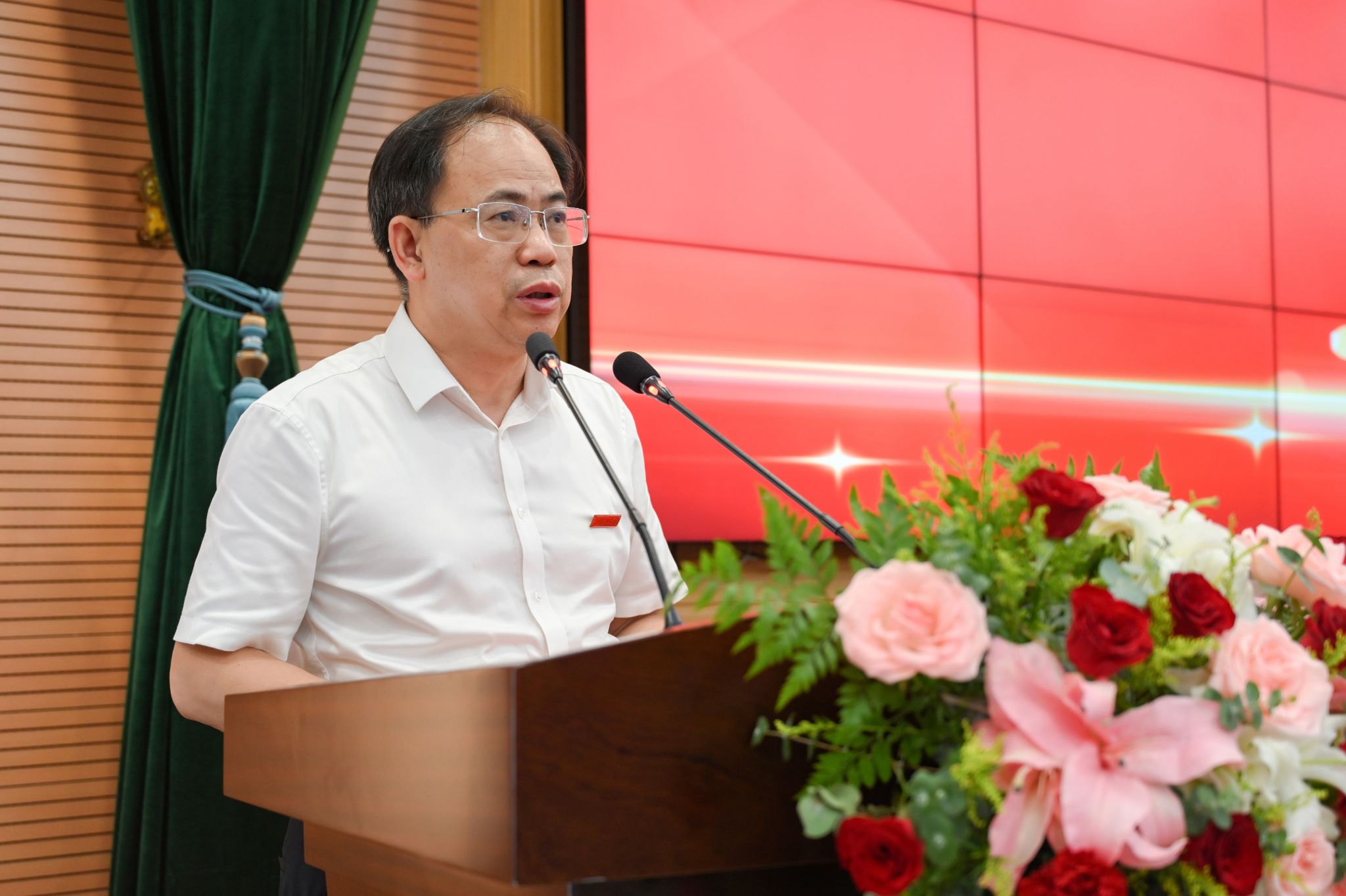 大会在庄严的国歌声中拉开帷幕。在何振的带领下,全体人员高举右手,重温教师誓词:我志愿成为一名人民教师,忠诚党的教育事业……为教育发展、国家繁荣和民族振兴努力奋斗!