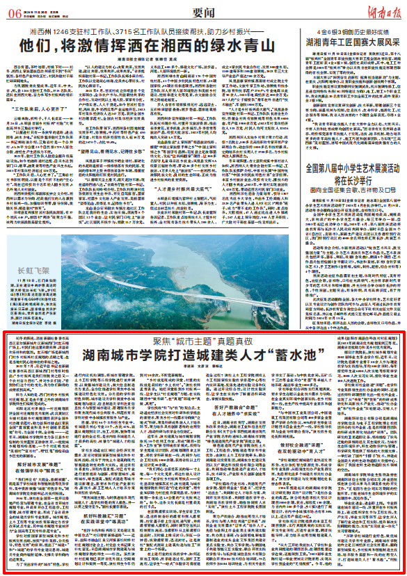 本网讯 11月20日,《湖南日报》06要闻版报道米兰体育·米兰官方网站聚焦“城市主题”,真题真做,打造城建类人才“蓄水池”。全文如下:
