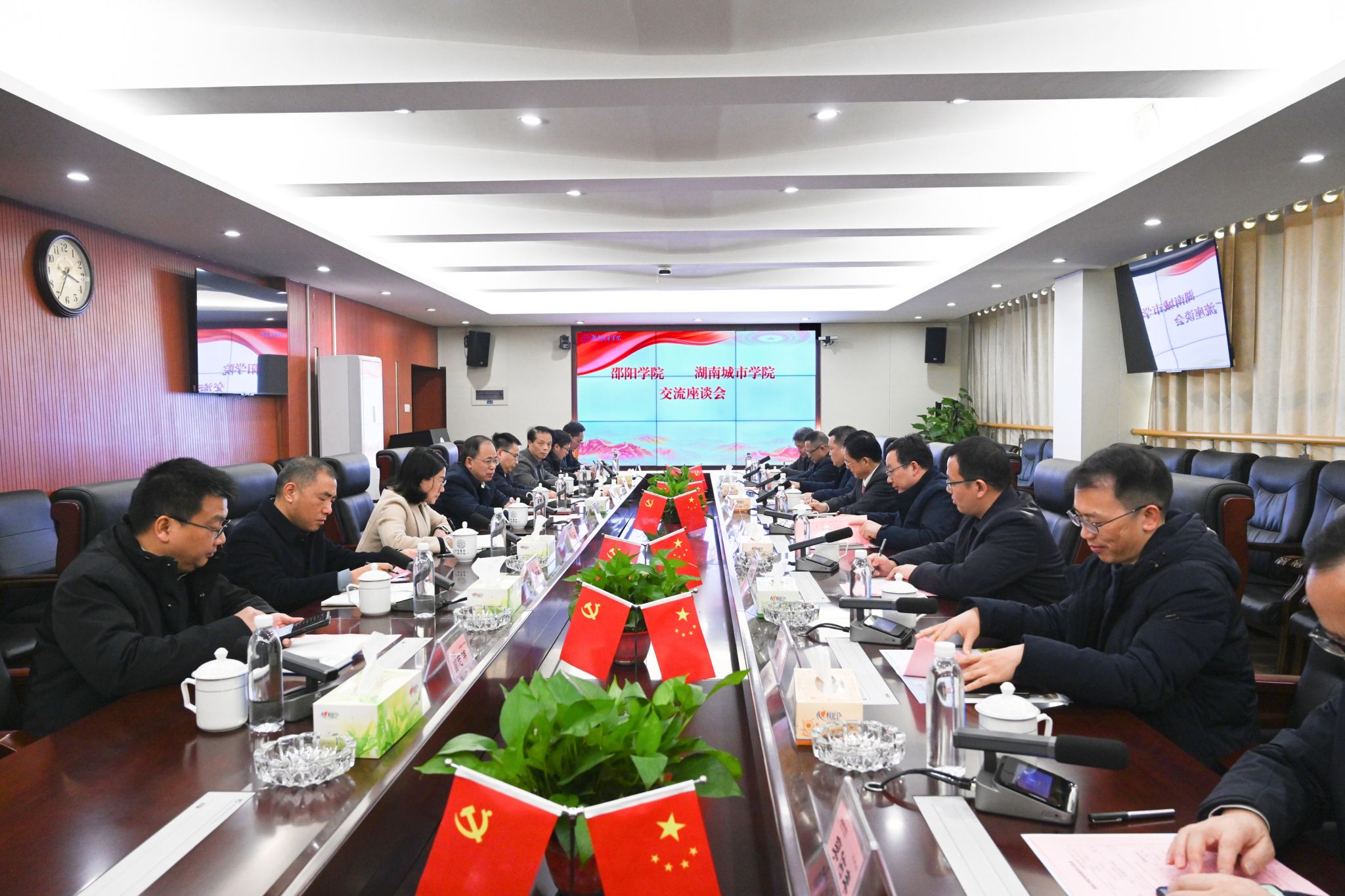 邵阳学院党政办、教务处、科技处、研究生工作部、发展规划与学科建设处等职能部门负责人,我校相关部门负责人参加座谈会。会后,两校相关部门负责人就各自分管工作进行了深入交流。