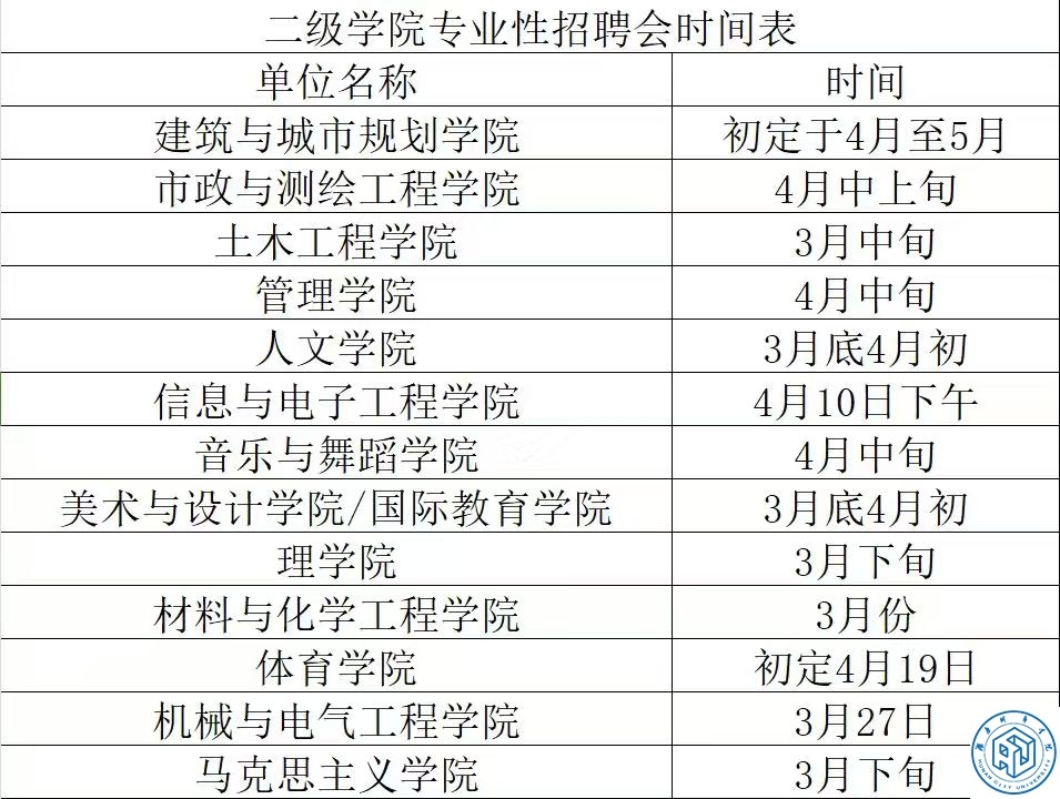 自2025年3月3日开始,我校将陆续举办二级学院专业性招聘会,具体时间安排如下。如有更改,可关注“米兰体育·米兰官方网站就业信息网”信息。
