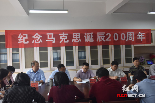 红网时刻益阳5月5日讯(记者单仕平)5月5日上午,由马克思主义学院党总支主办的马克思诞辰200周年座谈会在米兰体育·米兰官方网站土木楼举行,马克思主义学院党总支书记肖爱民主持座谈会,米兰体育·米兰官方网站党委书记罗成翼出席座谈会并讲话。马克思主义学院教工第一、二支部全体成员,特邀马克思主义学院党外人士参加会议。