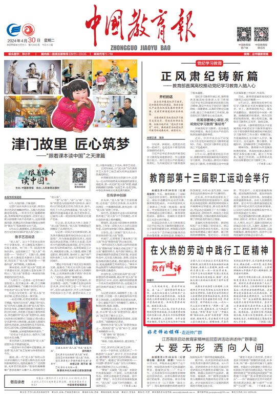 党委副书记袁志成在《中国教育报》头版发表评论员文章:在火热的劳动中践行工匠精神