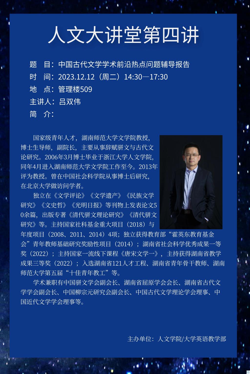 上一条:学术预告|人文大讲堂第五讲—中国现当代文学学术前沿热点问题辅导报告