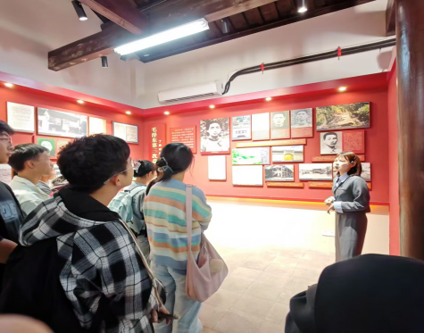 在学院党委的组织下,来自不同专业的50余名新生代表学生党支部书记周文萍的引导下,前往金家堤党支部纪念馆。在踏入纪念馆的那一刻,同学们即被墙上镶嵌的革命历史图片和英雄事迹所吸引。纪念馆的讲解员以生动的语言,详细介绍了金家堤党支部的成立背景和在革命斗争中的重要作用,以及一代又一代革命者为国家和民族的解放事业不懈奋斗的动人故事。讲解过程中,学生们认真倾听,频频点头,深刻体会到历史的厚重感。