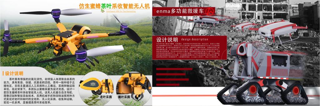 本次大赛受到机械与电气工程学院领导的高度重视,对大赛进行了精心策划,组织安排比赛动员会和比赛辅导会,充分调动师生的参赛积极性。我校指导老师和参赛学生利用课余和假期时间积极备赛,从作品创意、三维建模、模型渲染、海报制作到模型制作,每一步都有序推进,充分发挥创造性思维,不断完善作品,最终取得优异成绩。其中由朱国老师指导的作品——仿生蜜蜂茶叶采收智能无人机、多功能灾地救援车两项作品荣获一等奖;陈昶老师指导的作品——维度闪电:超高速3D打印机、袁越阳老师指导的作品——呼吸肌动信号检测仪、袁聪老师指导的激光杀灭福寿螺螺卵智能设备、林业多功能机器人四项作品获得三等奖。