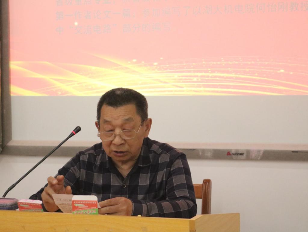 为宣传“五老”的光荣事迹,弘扬爱国主义精神,激励青年学生在党的新征程上立志做有理想,有担当,能吃苦,肯奋斗的新时代青年,为发挥“五老”亲历者、见证者、实践者的优势,教育激励广大青年学生在新征程上立志做有理想、敢担当、能吃苦、肯奋斗的新时代好青年,2023年4月13日下午机械与电气工程学院在土木楼506教师举行“老少共话二十大,踔厉奋发新征程”主题教育活动,邀请优秀“五老”曹永卿教授和关工委副主任肖玉衡老师作报告,本次活动由机械与电气工程学院党委副书记易志明主持。