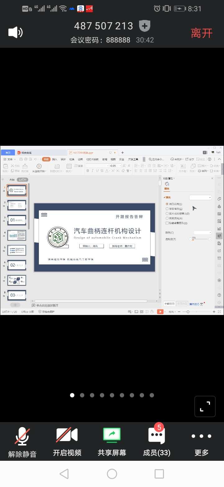 3月7日,机械与电气工程学院举行了2020届本科毕业设计(论文)线上开题答辩会,2020届138名毕业生以及19名指导教师参加了论文开题答辩会。本次开题答辩采用“腾讯会议”“QQ群”等平台进行,分为学生陈述、教师线上提问、学生在线答辩、答辩组评定等环节。学生制作PPT针对毕业设计(论文)的选题背景及意义、研究现状、研究内容、研究方法以及进度等内容进行汇报。答辩小组教师根据学生汇报内容提出问题及修改意见,学生结合对课题的理解和研究,与答辩教师探讨交流。