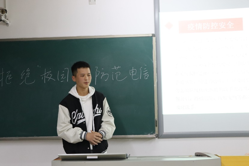 本次团日活动由各班级推选主持人主持讲解安全知识。活动开始,先由主持人向同学们简要的介绍了大学生身边主要的几种安全隐患,着重强调了电信诈骗、校园贷对学生造成的危害。校园贷主要通过消费金融公司、P2P贷款平台、线下私贷及银行机构四种方式进行贷款,是学生在短期内得到贷款满足自己需求的途径,但过多负债却也可能让学生面临精神压力负担过重以至于荒废学业、个人信息遭泄露、受到暴力催款危及人身安全等危害,进而严重地影响学生正常的学习生活。然后,主持人就如何远离校园贷问题给出了树立正确消费观念、保护好个人信息、提高抵御风险的能力等预防方法。紧接着,主持人还为同学们一一讲解了其他安全知识,如由于疫情反弹而需引起注意的疫情防控安全、大学生最容易上当受骗的电信诈骗的预防安全、秋冬季易发的消防安全等。最后,在主持人呼吁中,此次安全教育团日活动顺利落幕。
