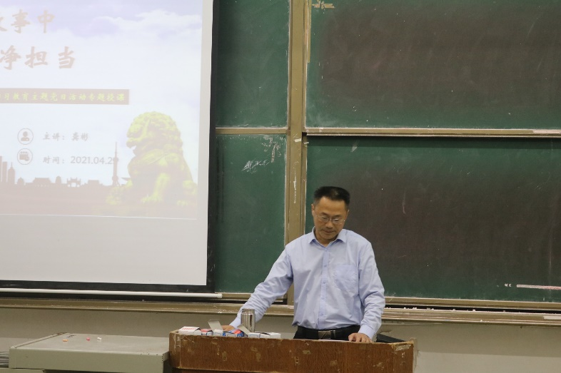 2021年4月28日晚7点,我院在一教108开展了面向全体学生党员,学生干部的党史学习教育专题讲座。主讲人是机械与电气工程学院党总支副书记,副教授龚彬。党务办宣传部副部长王正驰主持本次活动。