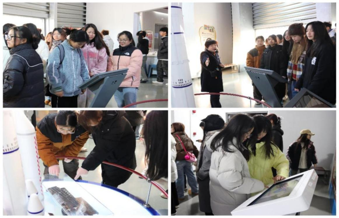 讲座结束后,学生们陆续前往益阳市科技馆进行参观。科技馆设置了科学启蒙、科学探秘、科技生活、生命健康、防灾与安全、地球家园六大主题展厅。伴随讲解员对于科技知识的输出,学生们聚精会神,认真听讲,边听边思边讨论边提问。通过视听觉传达和动手实操,学生们也纷纷表示这次参观让他们对国防科技有了更加直观和深刻的认识。