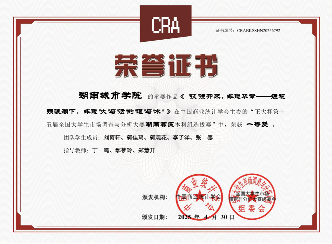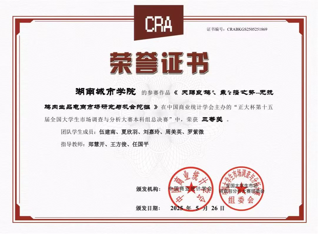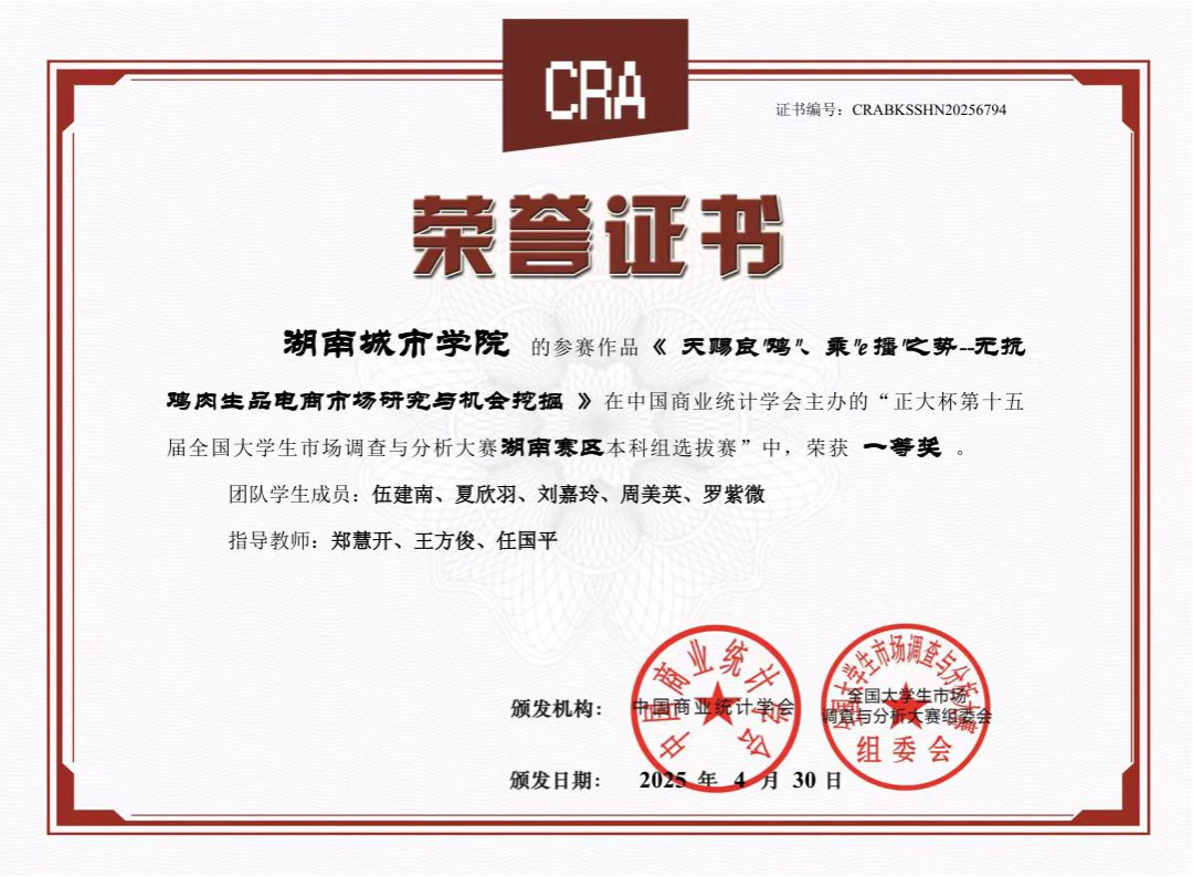 米兰体育·米兰官方网站对本次赛事给予高度关注,在教务处的全力支持下,管理学院郑慧开等9位老师组成专业指导团队,精心筹备赛事组织与备赛指导工作,凭借科学规划与积极动员,吸引众多学子踊跃报名参与比赛。经过校内选拔赛,共有7支团队脱颖而出晋级省赛。最后经过省赛队伍激烈的角逐与层层选拔后,我校伍建南、夏欣羽、刘嘉玲、周美英、罗紫微同学在本次大赛全国总决赛中获得国家级三等奖1项。此外,在湖南赛区选拔赛中,我校学子还获得省级一等奖3项、省级二等奖3项、省级三等奖1项。