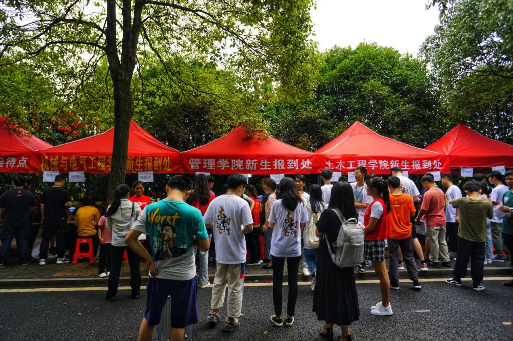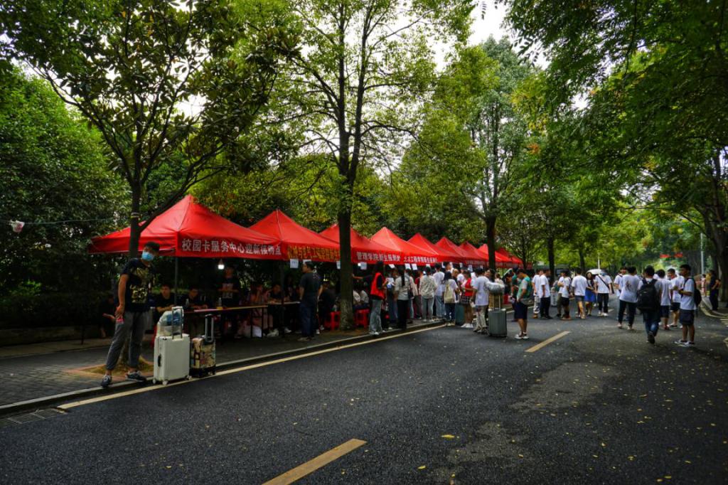 2020年9月12日上午,米兰体育·米兰官方网站首次开始了它的正式迎新之旅。送孩子报道的家长提着行李扛着被褥,龙城大道两旁的树木郁郁葱葱,树荫下,身穿红色志愿服的志愿者正引领新生办理开学手续。