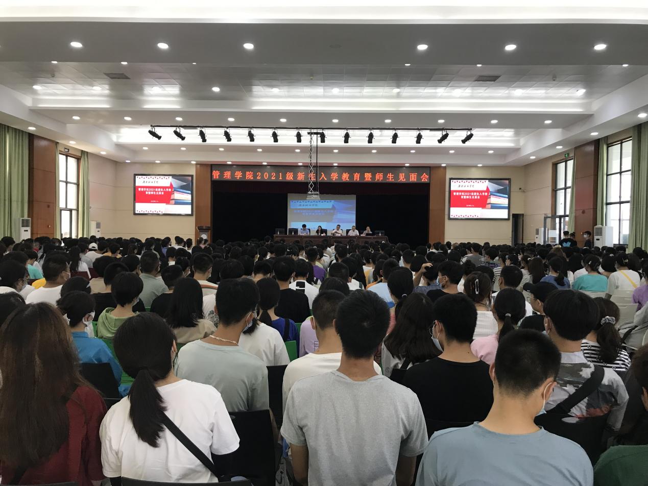 9月15日下午14时30分,管理学院在新食堂三楼活动中心举行2021级新生入学教育暨师生见面会,与会人员有管理学院党委书记王正安、党委副书记王润华、副院长刘刚、任国平、各教研室主任、没课的任课老师、全体辅导员以及2021级全体学生。本次会议由王正安书记主持。