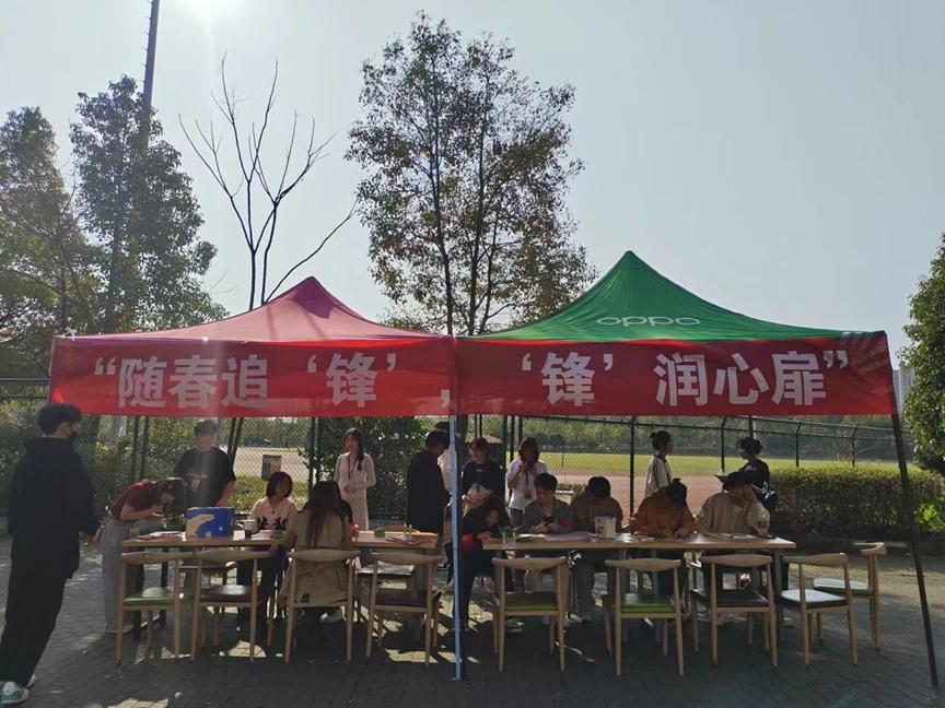 雷锋精神是“热爱党、热爱祖国、热爱社会主义的体现。同时也是服务人民、助人为乐的奉献精神,干一行爱一行、专一行精一行的敬业精神,锐意进取、自强不息的创新精神,艰苦奋斗、勤俭节约的创业精神”为基本内容的中国共产党人精神谱系的伟大精神之一。因此,为将学习雷锋精神深刻融入校园精神文明建设之中,我院于2024年3月23日至24日在第一食堂西侧举办了“随春追锋,锋润心扉”的主题活动。