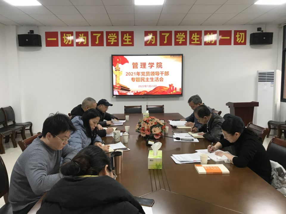 2022年1月22日下午,学院党委在管理楼622组织召开2021年度党史学习教育和巡视整改专题民主生活会。学校党委委员、副校长何振同志出席并指导会议。学院党委委员王正安、孙倩、王润华、赵旭、任国平、刘刚参加会议。会议由党委书记王正安同志主持。