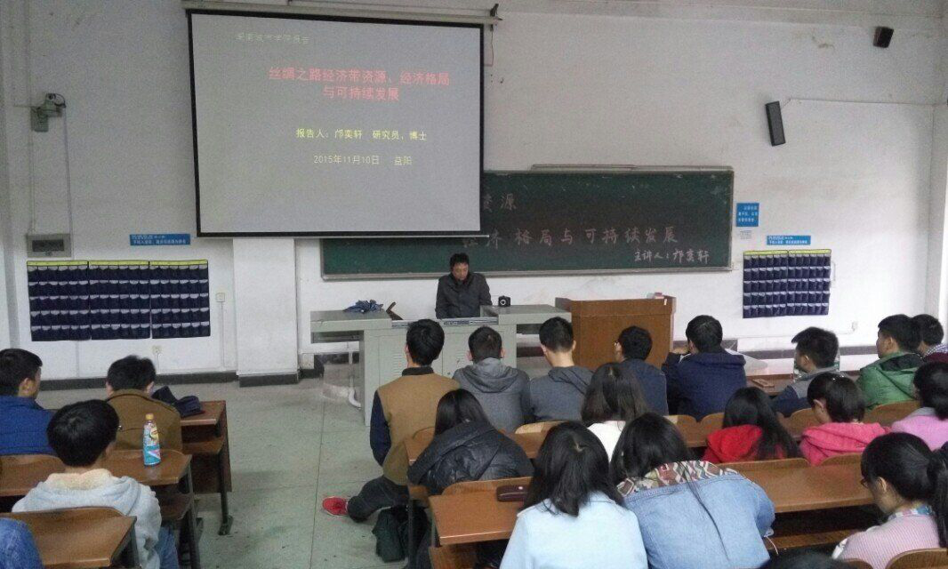 米兰体育·米兰官方网站优秀校友、湖南省社会科学院农研中心研究员邝奕轩教授为我院新生们开展了以“丝绸之路资源、经济格局与可持续发展”为主题的报告讲座,讲座在一教105教室举行。我院刘刚老师和王方俊老师以及全体大一新生聆听了讲座。