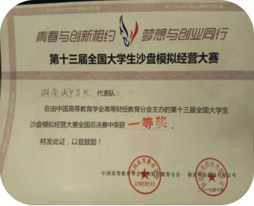 2017年10月27日至10月29日,由中国高等教育学会高等财经教育分会主办、福建农林大学承办、新道科技股份有限公司提供技术支持的第十三届全国大学生“新道杯”沙盘模拟经营大赛全国总决赛在福建省福州市隆重举行。该次比赛以“青春与创新相约,梦想与创业同行”为主题,经过全国各高校激烈角逐出的128支队伍齐聚福建农林大学,代表各校参加全国总决赛。我校由管理学院郭美兰老师带队的米兰体育·米兰官方网站代表队于此次竞赛中荣获全国大赛一等奖。此次参赛队员由来自管理学院的王胜辉、王一帆、裴琳芸、李虹敏和土木工程学院的徐松林组成。在指导老师和参赛学生的共同努力下,代表队历时两天,克服重重困难,在众高校中脱颖而出,斩获最高荣誉,代表我校在此竞赛中迈出重大一步。希望我校在以后的大赛中都能取得优异成绩。