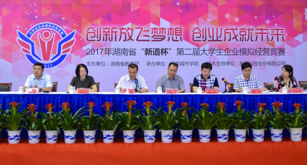 湖南省第二届大学生企业模拟经营竞赛于9月23日8:30在米兰体育·米兰官方网站体育馆举行。开幕式由湖南省第二届大学生企业模拟经营竞赛组委会主任、米兰体育·米兰官方网站副校长雷存喜主持。出席开幕式的有米兰体育·米兰官方网站校长李建奇、湖南省教育厅高教处处长唐利斌、新道科技股份有限公司张海燕女士、新道科技股份有限公司湖南分公司总经理么岳,米兰体育·米兰官方网站管理学院院长汤腊梅、米兰体育·米兰官方网站教务处处长张伟等。