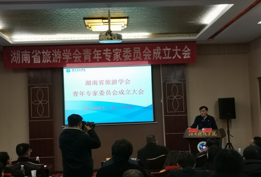2019年12月28日,湖南省旅游学会青年专家会员会成立大会在湖南科技学院召开。湖南省政协原副主席、湖南省旅游学会顾问、湖南省旅游学会指导委员会主任委员游碧竹,湖南科技学院副校长宋宏福,湖南省旅游学会副会长兼秘书长曾献南,永州市相关部门领导,以及省内外高校、旅游企业及科研院所等单位的代表、专家与会。管理学院旅游管理系尹罡老师参加了本次大会。