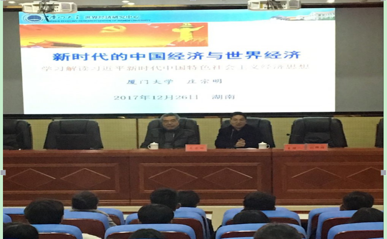 2017年12月26日,厦门大学经济学教授、博导,国务院学位委员会委员、学科评议组成员庄宗明教授在建规楼121学术报告厅做了题为“新时代的中国经济与世界经济”的学术报告。庄教授的报告联系十九大精神,分析了当前中国和世界经济形势,对我校管理学院教师的经济学教学和科研有着重要的指导作用。学术报告会后,庄教授与管理学院老师们亲切座谈,为老师们指导国家社科标书的撰写工作。米兰体育·米兰官方网站副校长何振教授、刘辉煌教授先后主持会议,党委书记罗成翼教授现场接见了庄教授,衷心感谢庄教授传经送宝,希望庄教授大力支持学校的科研工作。