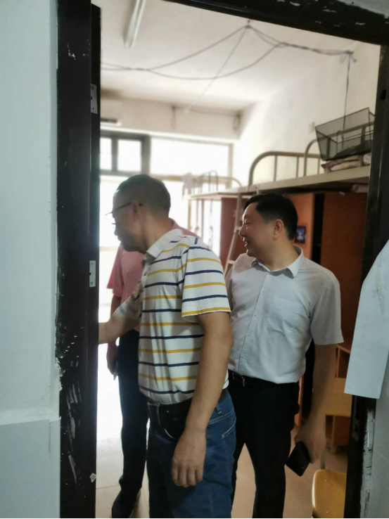 为了有序推进学校暑期各项基建和维修工程,确保安全生产和工程质量,7月28日上午,学校党委委员、副校长谭献良率领基建与后勤管理处、审计处、网络与信息管理中心、学生工作处、保卫处、离退休工作处等部门相关人员深入学生公寓第24栋和第11栋2020级新生寝室粉刷修缮、北区服务活动中心在建项目等施工工地现场,进行了安全生产大巡查,并对现场施工人员表示慰问。