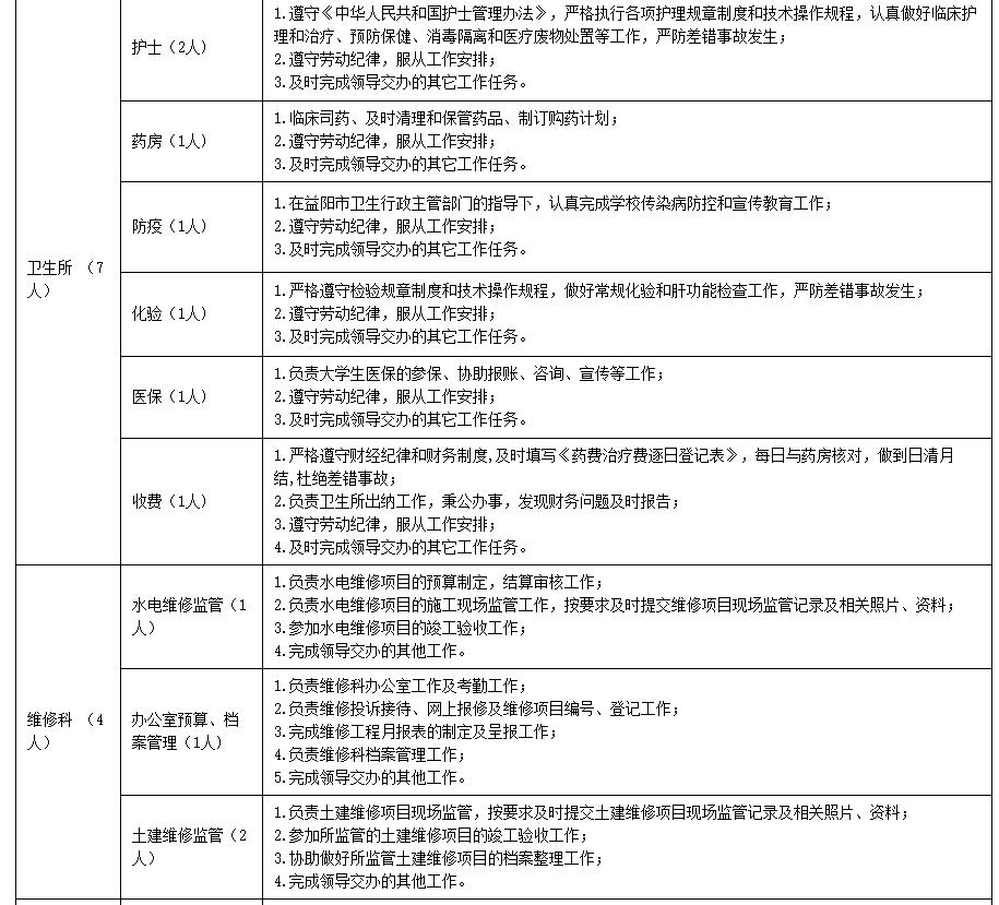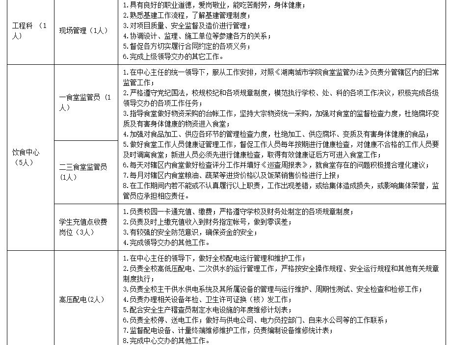 基建与后勤管理处各岗位应聘职数及岗位职责表
