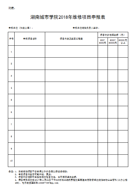 附表:《米兰体育·米兰官方网站2018年维修项目申报表》