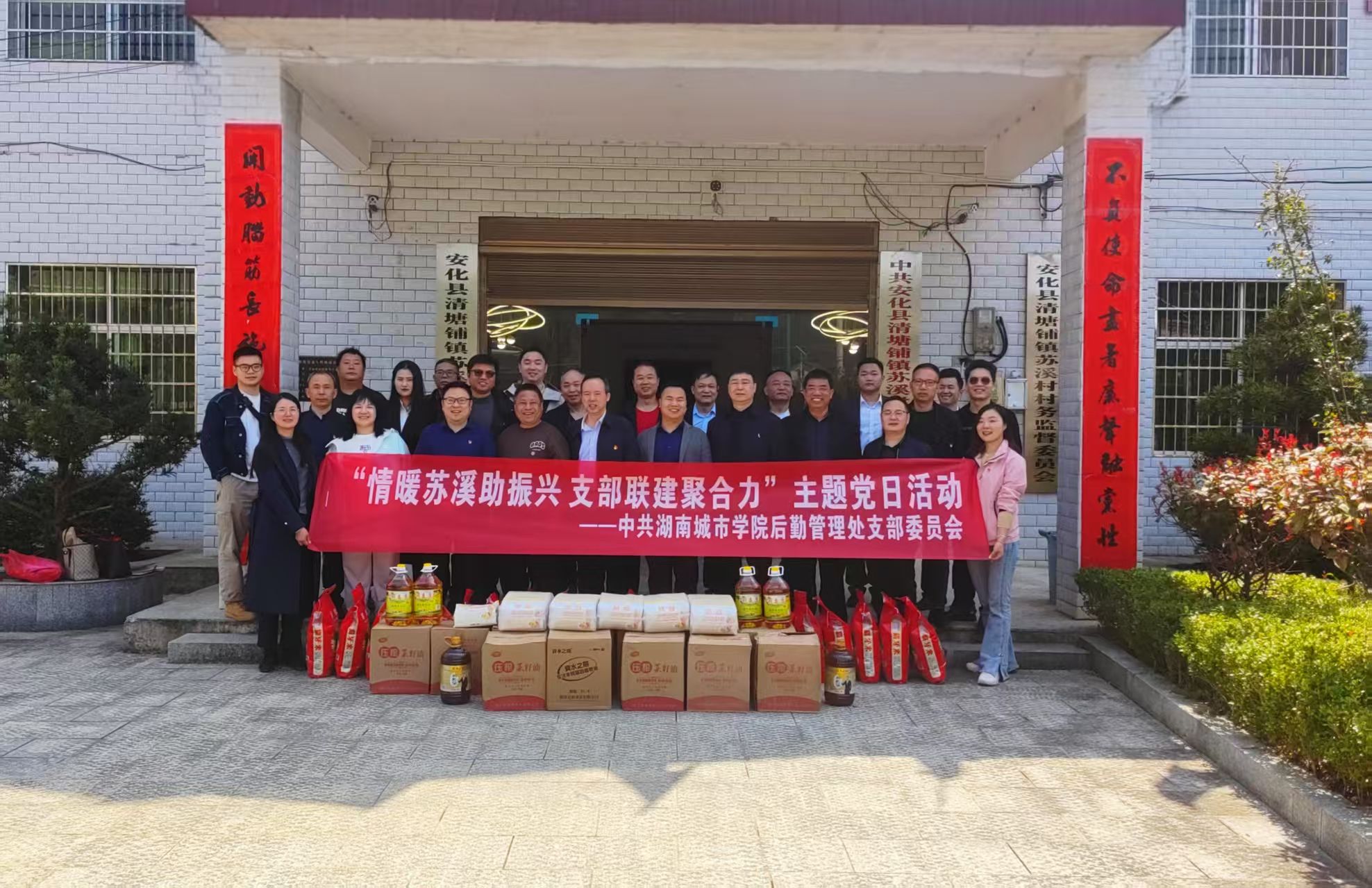 (撰稿人:雷玉成)3月21日,米兰体育·米兰官方网站后勤管理处党支部携手苏溪村党总支,以“情暖苏溪助振兴 支部联建聚合力”为主题开展了一场别开生面的主题党日活动。通过“党建+志愿服务+乡村振兴”三融合创新模式,将高校后勤资源优势注入乡村沃土,绘就了一幅校村携手共促振兴的生动图景。校党委委员、组织部部长吕贤军,机关党委书记曹友余、后勤管理处党支部全体党员、后勤管理处中层(含)以上干部、后勤服务企业代表和苏溪村党总支党员代表、学校驻村工作队共计四十余人参加此次活动。