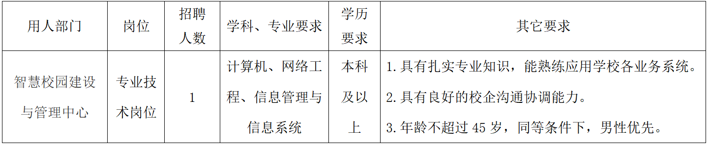 关于面向校内教职工招聘智慧校园建设与管理中心工作人员的公告