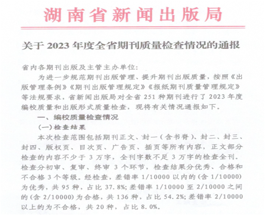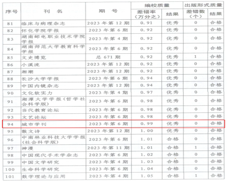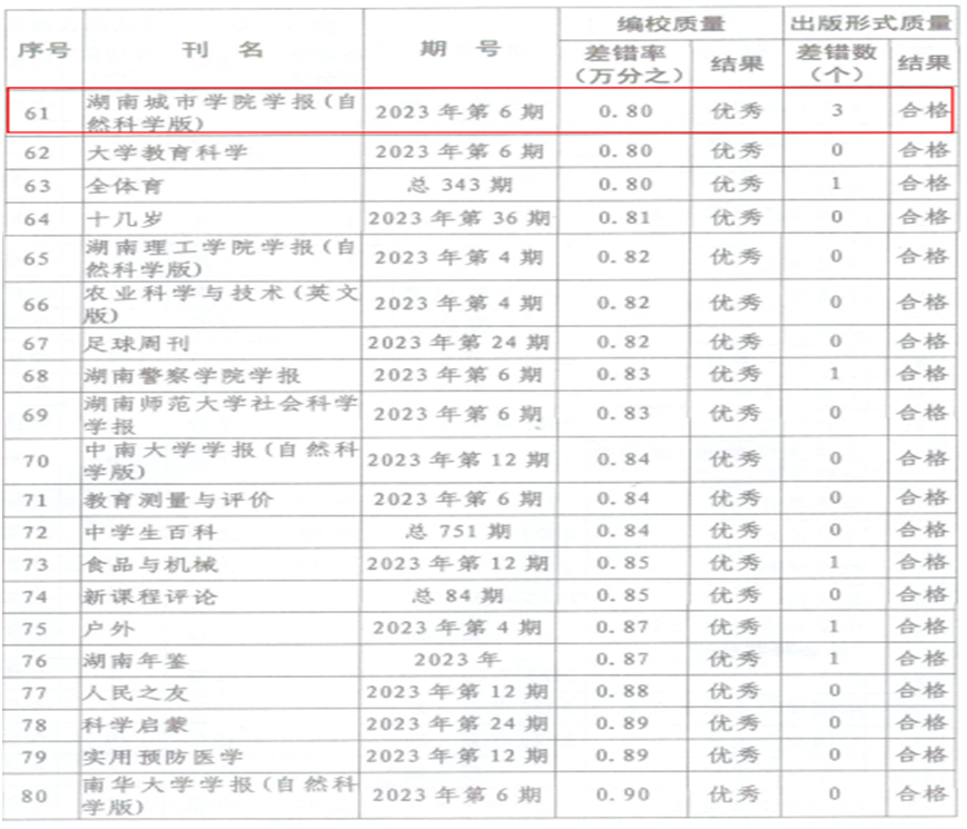 近日,湖南省新闻出版局下发《关于2023年度全省期刊质量检查情况的通报》,《米兰体育·米兰官方网站学报(自然科学版)》和《城市学刊》获评“优秀”等级。