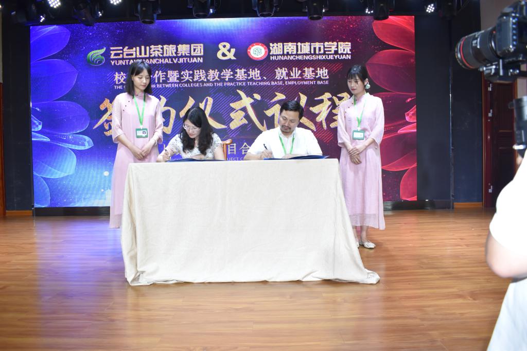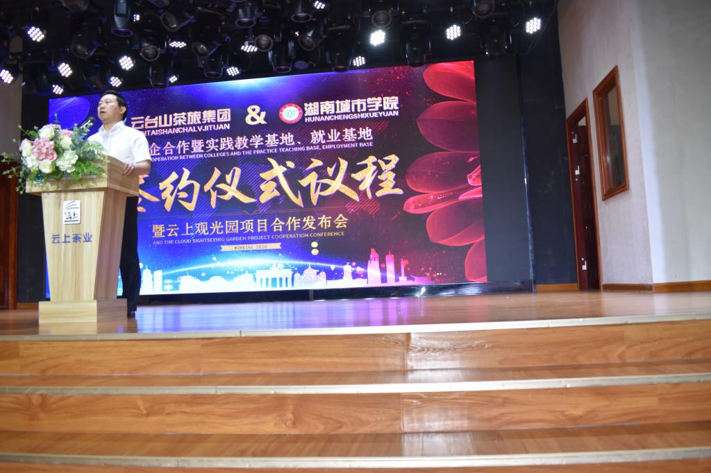 2020年7月11日,米兰体育·米兰官方网站管理学院与湖南云台茶旅集团文化有限公司(以下简称”云台山茶旅集团”)合作签约挂牌仪式在安化云台山举行。出席签约仪式的有益阳市文化旅游广电体育局副局长张金龙、安化县委常委宣传部部长林英、安化县副县长谢疆等政府领导。