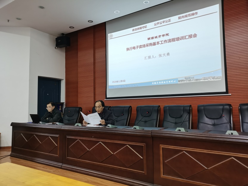 2020年12月04日15:00时,在土木楼828学术报告厅,采购与招投标管理中心主持召开“学校执行电子卖场采购工作流程操作”培训会。采购与招投标管理中心主任冷云飞组织学习了《米兰体育·米兰官方网站关于执行政府采购电子卖场的有关规定》(湘城院发[2020]66号)及相关要求和注意事项。培训会上,张大勇介绍了政府采购电子卖场的具体操作流程,王胜斌负责发放了全校各采购经办人和审核人岗位账号密码及负责会务事宜。