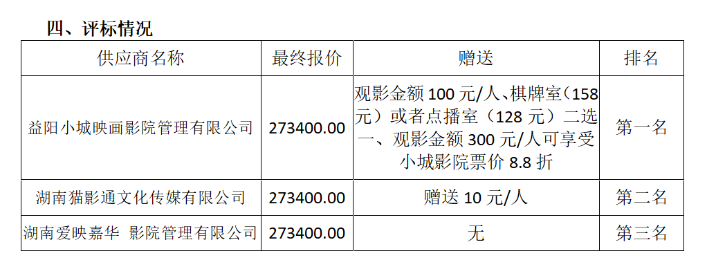 2025年教职工观影服务项目竞争性谈判2025415结束,现将成交结果公告如下: